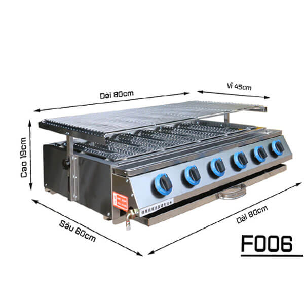 Bếp nướng gas 6 họng đốt dài thường được sử dụng trong các nhà hàng, quán ăn hay các buổi tiệc ngoài trời vì khả năng nấu nướng nhanh chóng và tiết kiệm thời gian so với bếp nướng thông thường. Sản phẩm đơn giản là mang lại sự tiện lợi hoàn hảo trong tất cả các khía cạnh, bao gồm tiết kiệm gas, nướng thức ăn nhanh chóng và không tạo khói bụi khi sử dụng.