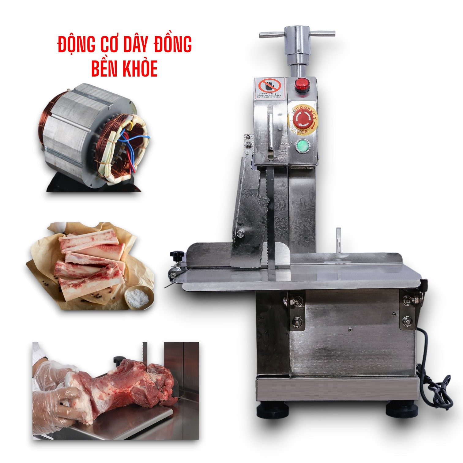 Động cơ mạnh mẽ kết hợp với lưỡi cưa bằng thép cứng mỏng chỉ 0,5mm giúp cho máy cưa xương có khả năng xử lý các loại xương bò, xương heo, xương dê, các loại thịt cá và thực phẩm đông lạnh một cách nhẹ nhàng và nhanh chóng.